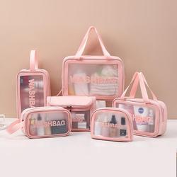 Set 6 pezzi borsa trasparente impermeabile per il trucco professionale da viaggio in PU + PVC borsa cosmetica trasparente Set borsa da toilette